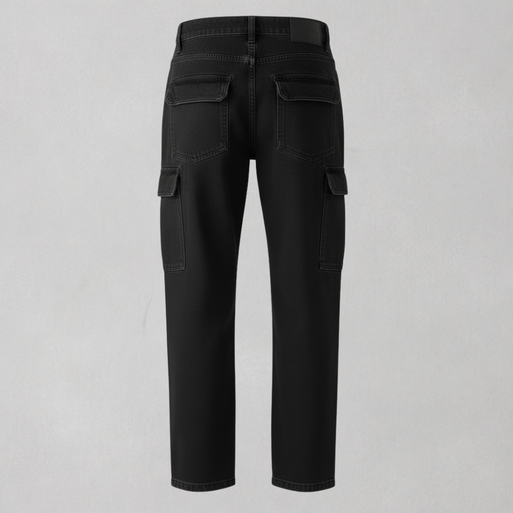 Classic Black Denim Cargo Jeans