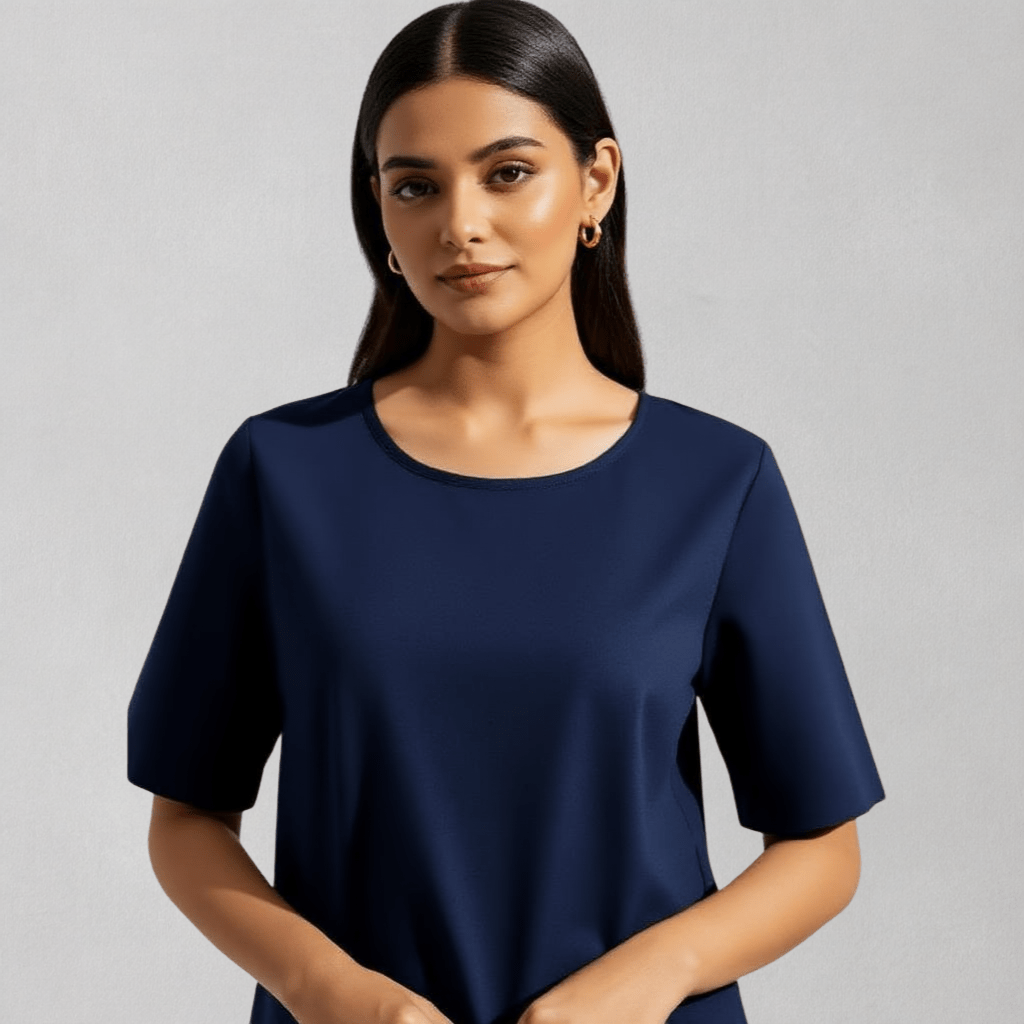 Elevate your casual wardrobe with this essential Deep Navy Blue Crew Neck T-Shirt. Designed for everyday comfort, this shirt features a classic crew neckline and short sleeves, offering a timeless silhouette that’s both relaxed and flattering.