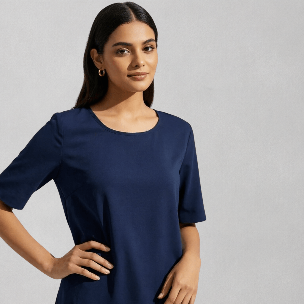Crafted from soft, breathable cotton blend fabric, it ensures lightweight comfort and durability, making it perfect for daily wear. Its clean, plain design with a straight hemline makes it a versatile staple that pairs effortlessly with jeans, shorts, or layered under jackets for a simple yet stylish look.