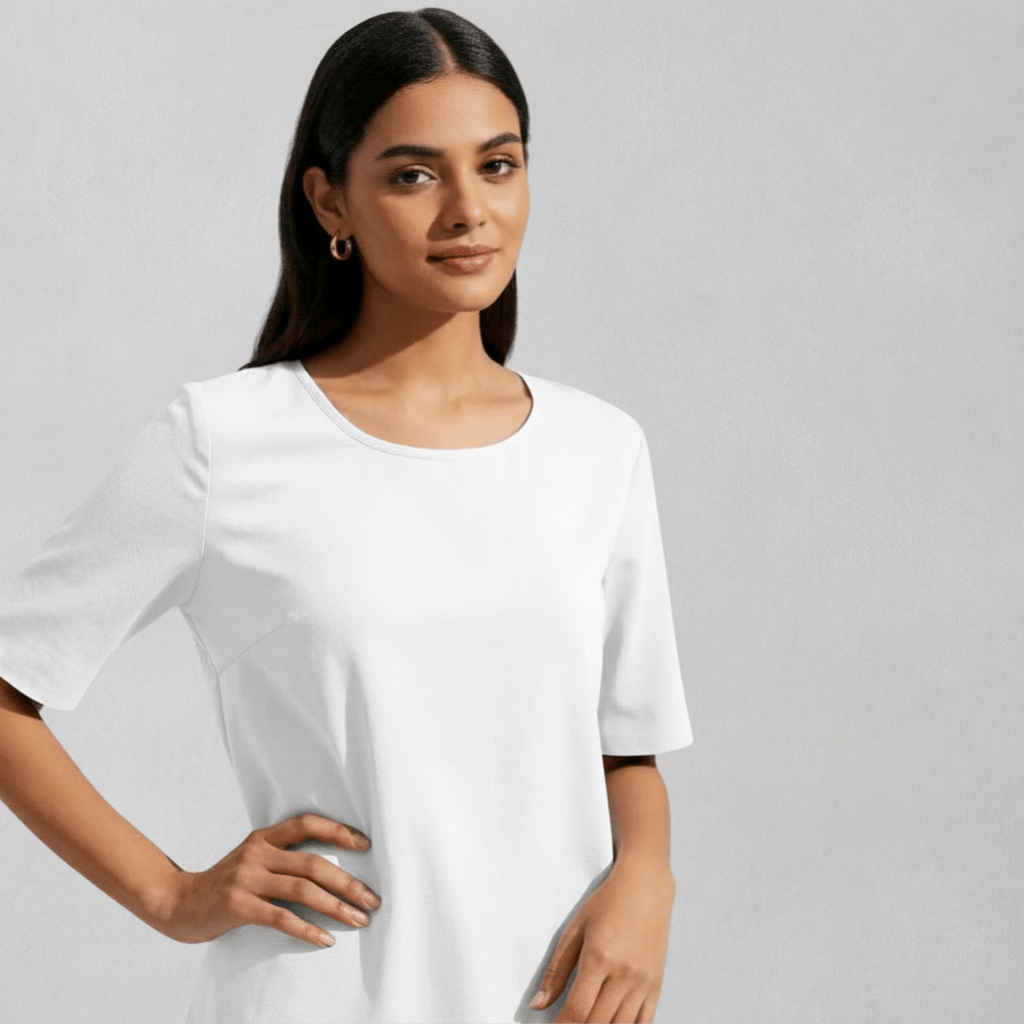 Made from a soft, breathable cotton blend, it provides lightweight comfort and long-lasting durability. The plain white design and straight hemline make it easy to pair with jeans, shorts, or layer under jackets—perfect for a fresh, minimal, and modern outfit.